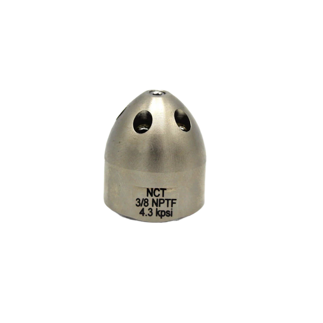 The Mole Penetrator nozzle has been designed for maximum forward penetration with a front-only jet configuration that delivers concentrated cutting power. With no rear jets, this nozzle allows for precise control of direction and speed while pushing material forward toward the main sewer line.