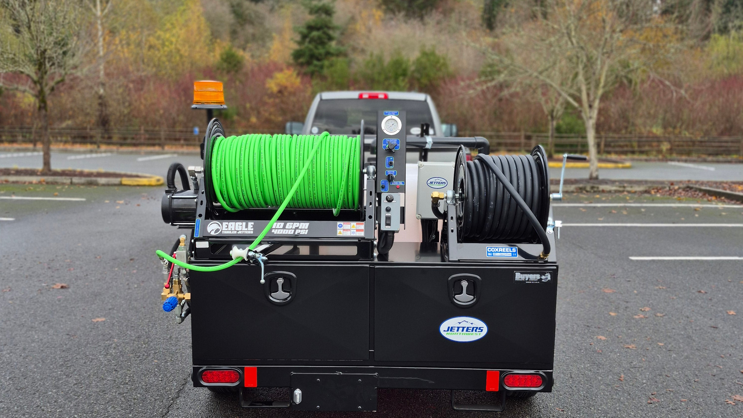 Every EAGLE 300 JETTER comes equipped with wireless remote control, a versatile 4-piece nozzle kit, premium jetting hose assemblies, and essential Jetters Northwest accessories so you're ready to work right out of the box.