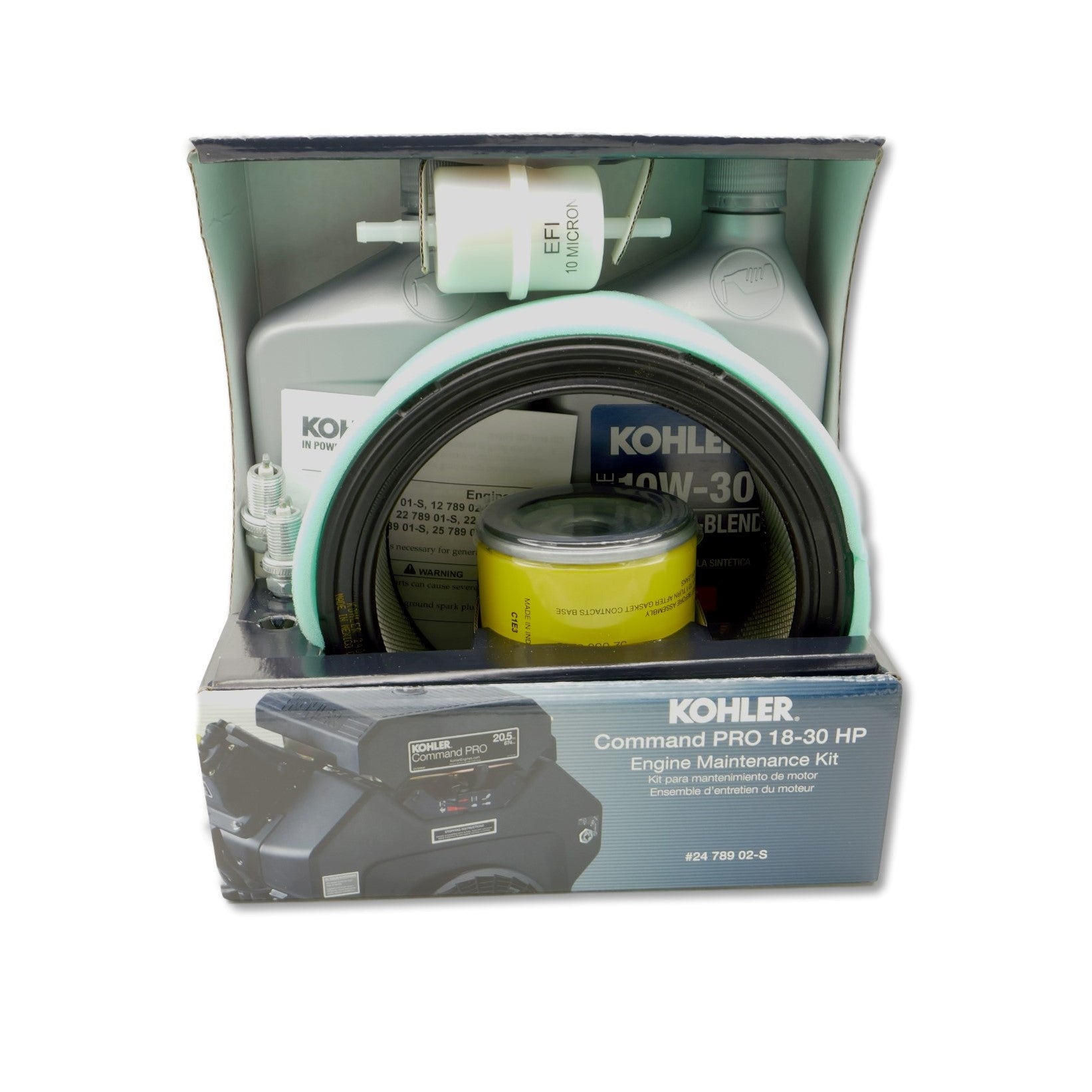 KOHLER ECH749 SERVICE KIT INCLUDES: AIR FILTER, OIL FILTER, FUEL FILTER, SPARK PLUGS AND MOTOR OIL